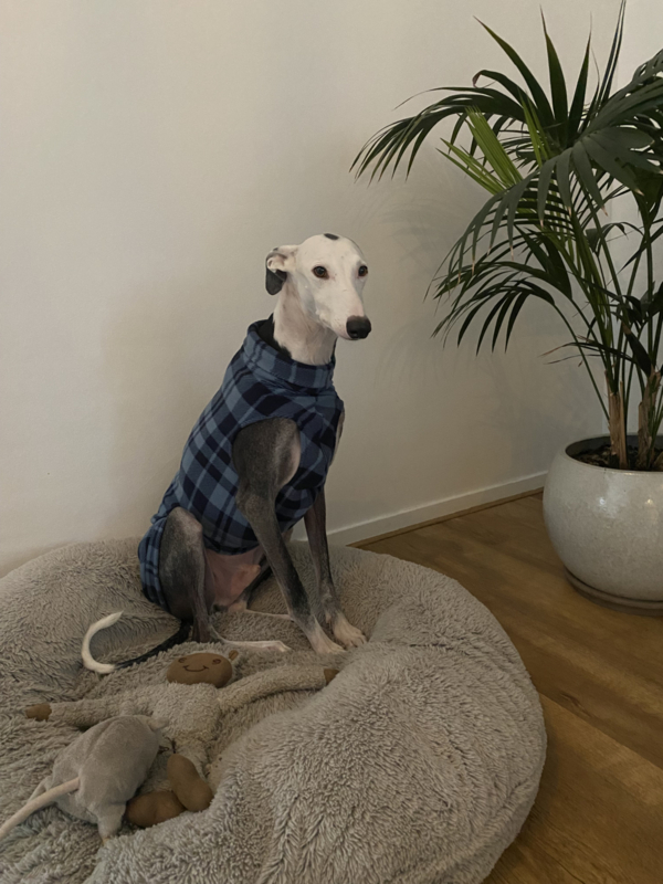 Rugmaat meten zoals op de laatste foto is aangegeven, van onderkant nek tot aanzet van de staart.