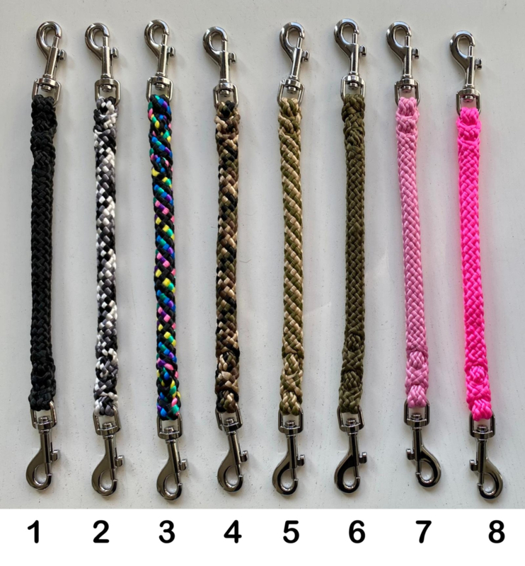 Op deze wijze zit de lijn nog aan het tuig via het koppelstuk, als de musketon van de lijn aan de halsband stuk of los gaat, of als de halsband over de kop schiet.